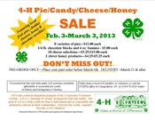 4-H members and volunteers will collect payment from each customer at the time the order is placed. Cheese, pies, honey and candy will be delivered March 21st in time for Easter and spring holidays.