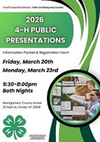Due to the current COVID-19 situation and social distancing we will be offering youth the chance to share their presentation on video to be uploaded to the Fulton-Montgomery 4-H YouTube Channel. These video presentations will be evaluated by our originally scheduled judges. If you would like to participate in this, please use the attached document for detailed instructions for submitting videos. All videos must be submitted by Friday, April 17th. Please be sure to email Kyle, ky292@cornell.edu with any questions.